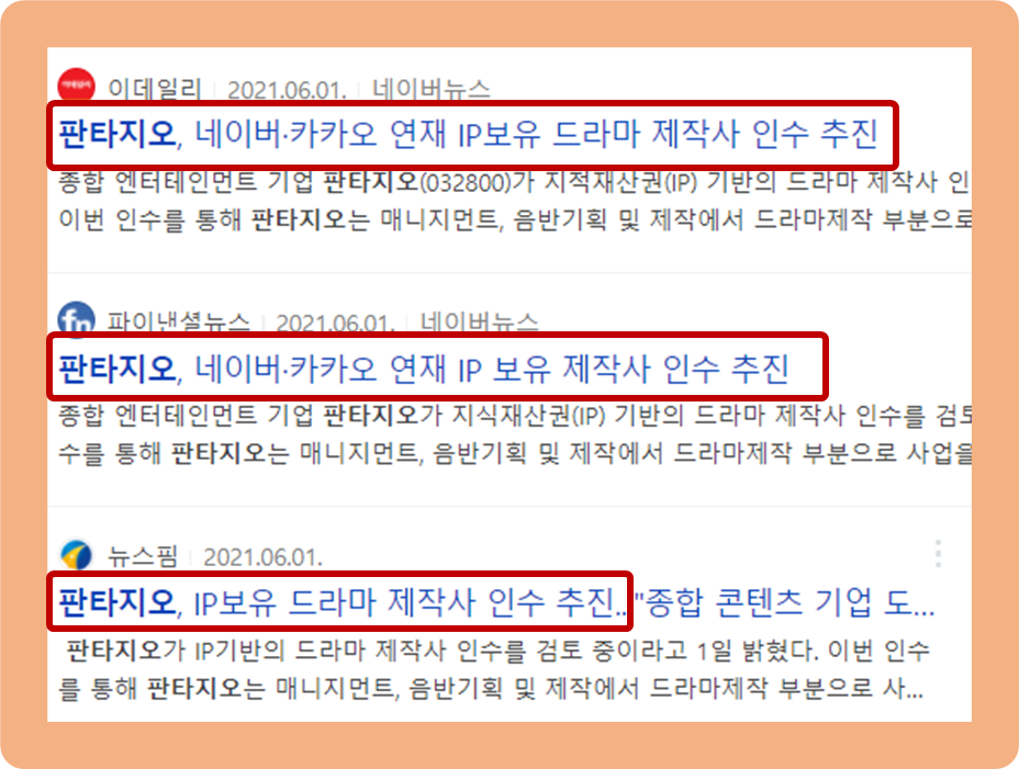 지난 2021년 6월 1일, 판타지오가 영상콘텐츠 부문으로의 진출을 위해 카카오 연재 등 경쟁력을 갖춘 IP(지적재산권)를 보유한 드라마 제작기업 인수를 추진 중이라고 발표했습니다.