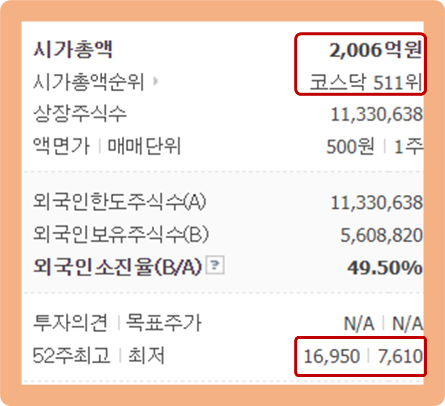 현재 기준으로 시총 약 2,006억원이며 코스닥 기업 중 511위이구요.