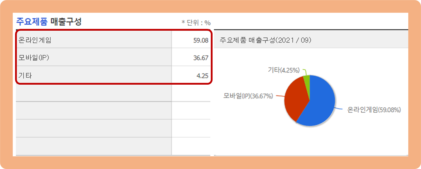 온라인 및 모바일(IP) 게임 부문에서 매출 대부분을 책임 지고 있는 모습이죠.