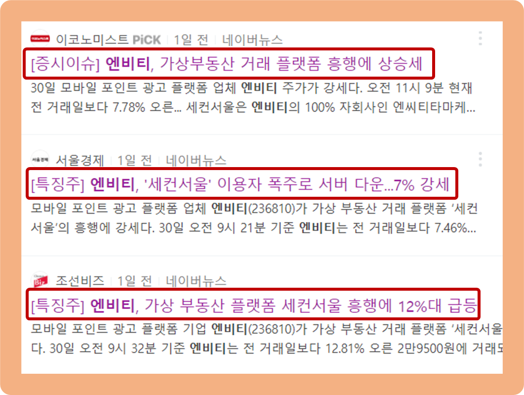 2021년 12월 29일, 엔비티의 100% 자회사인 엔씨티마케팅이 개발한 메타버스 가상 부동산 플랫폼인 세컨서울의 시범서비스를 개시했는데요.