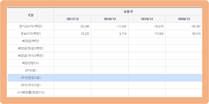 2020년 기준 당기순이익은 -494억원 손실을 기록하면서 전년도 대비 적자 폭이 더욱 심각해진 상황이네요.