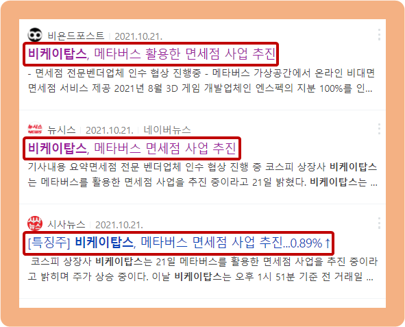 지난 2021년 10월 21일, 비케이탑스가 메타버스 면세점 사업을 추진한다고 발표했습니다.