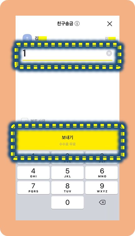여기서 송금을 원하는 금액을 입력해주신 후, 보내기를 눌러주도록 해요