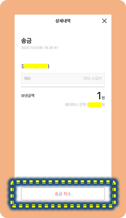 그런데! 여기서 보시면 오른쪽 위에 송금취소가 보이시죠?