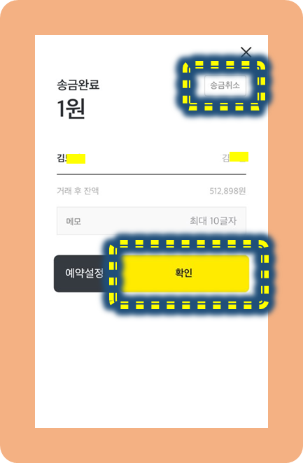 만약에 딱 이 화면에서 송금 취소를 원하시면 저 버튼을 눌러서 취소가 가능해요.