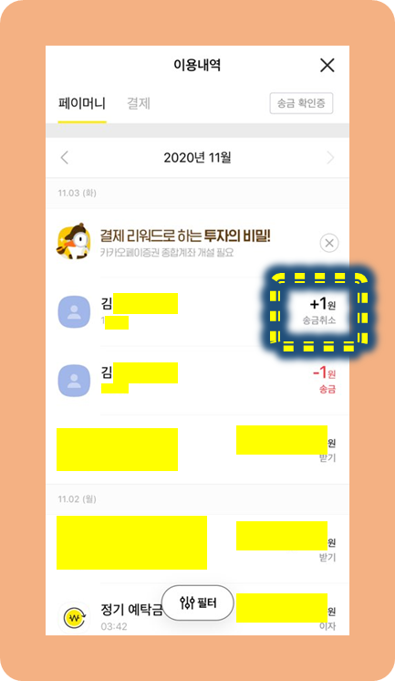 카카오페이 송금취소 방법 2