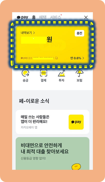 그럼 카카오페이 홈 메뉴로 들어오게 돼요.