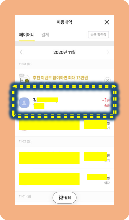 카카오페이 송금취소 방법 1