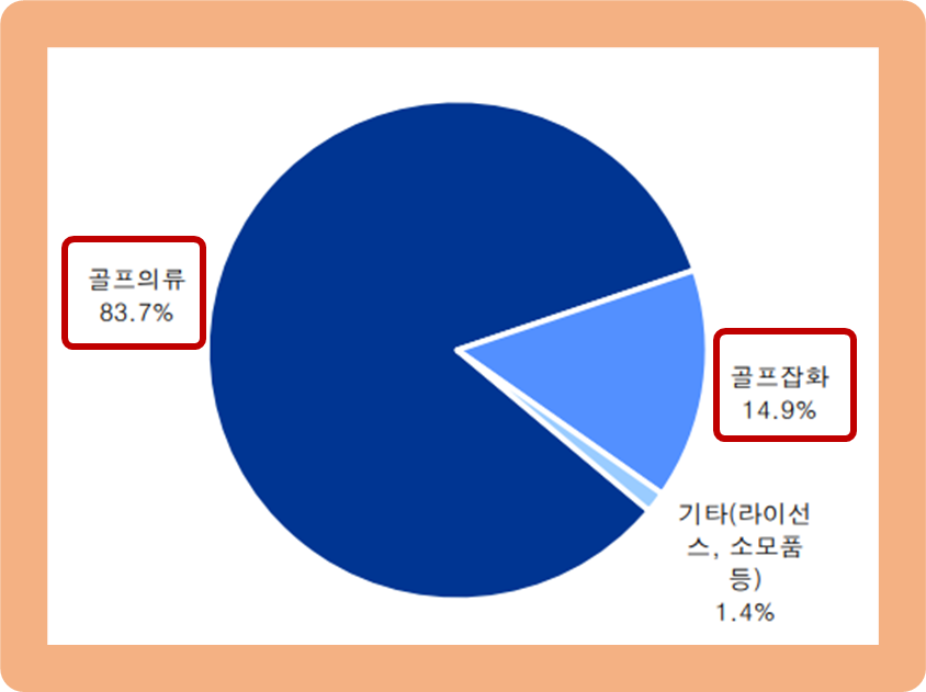 골프의류 부문이 약 83.7% 수준으로 매출 대부분을 책임지고 있구요.