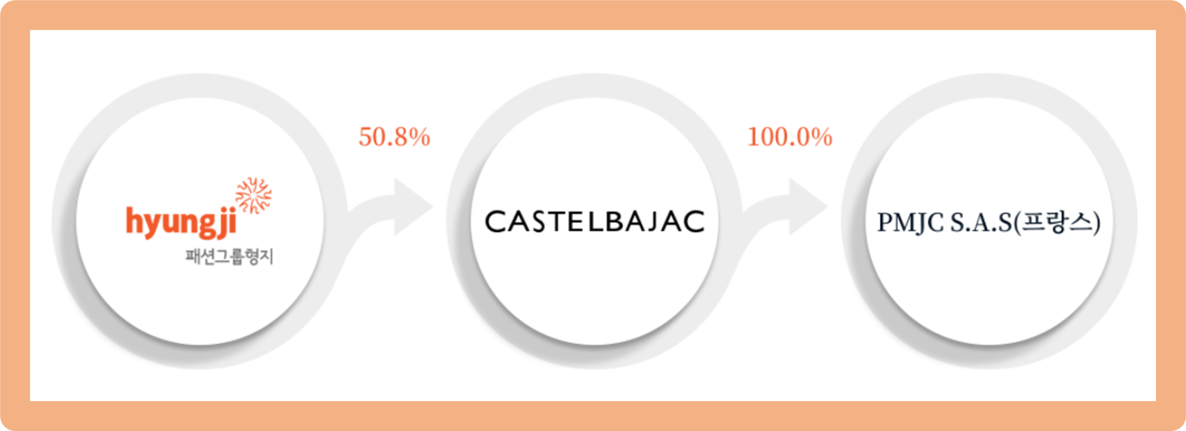까스텔바작은 프랑스 파리에 소재한 의류 라이선스 기업인 PMJC S.A.S(프랑스)를 종속기업으로 보유하고 있네요.