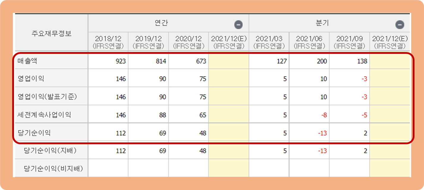 그리고 연간 영업이익과 연간 당기순이익도 2020년 기준 각 75억원, 48억원을 기록하면서 전년도 대비 각 16.7%, 30.5% 하락했네요.