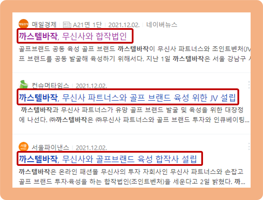 지난 2021년 12월 1일,까스텔바작이 무신사 파트너스와 조인트벤처 기업 설립을 위한 MOU를 체결했습니다.