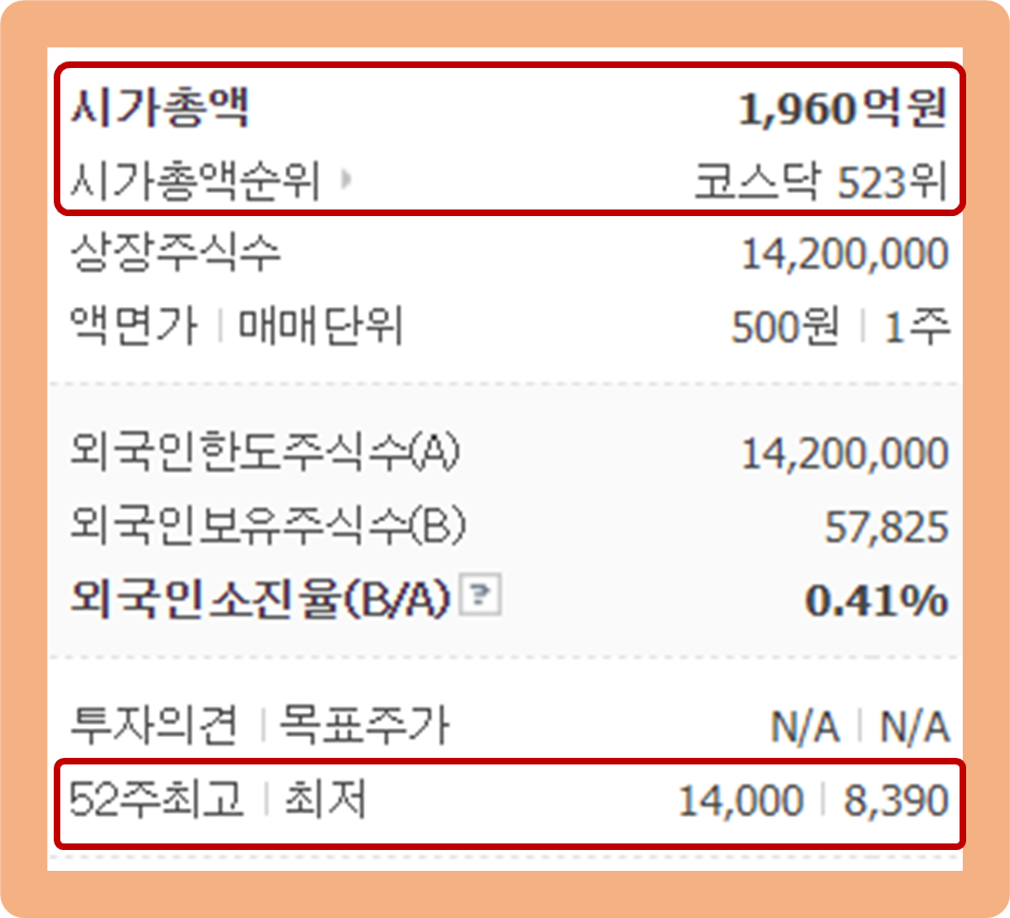 52주 최고가는 14,000원이며, 52주 최저가는 8,390원이네요.