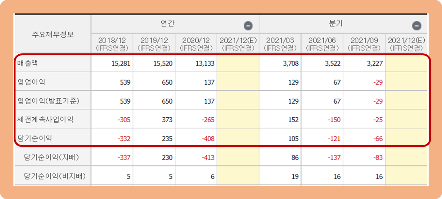 그리고 2020년 기준 영업이익도 137억원을 기록하면서 전년도(650억원) 대비 무려 약 79% 하락했구요.