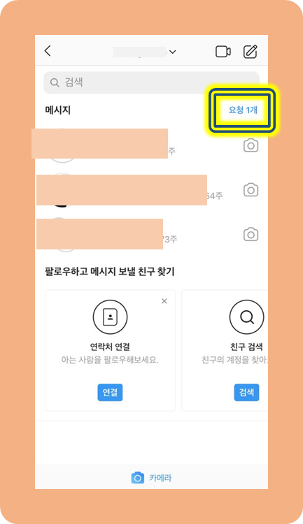 누군가 메세지를 보내려고 시도한 것 같으니 요청 1개라고 되있는 곳을 눌러주도록 할게요!