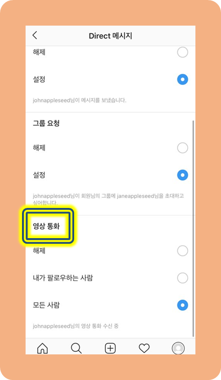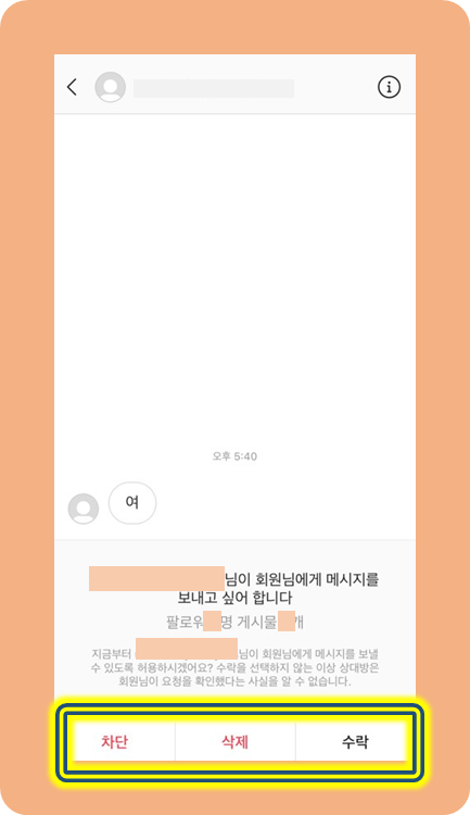 저 메뉴 중에 메세지요청을 해제해놓으시면, 다음에 누군가가 저에게 메세지를 보내려고 시도할 때 허용을 해 줄 필요없이 바로 메세지를 확인할 수 있어요 ㅎ
