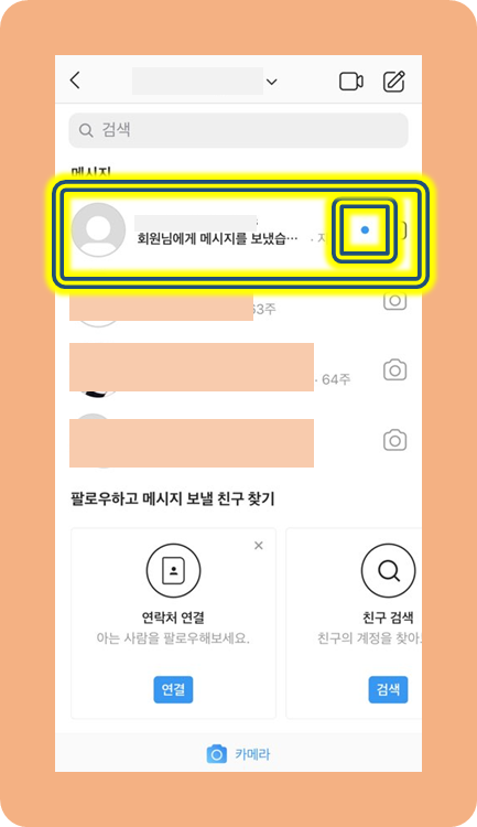평소 대화를 해봤거나 팔로우가 되어 있으면 저렇게 메세지가 와있다고 빨간색 표시가 있을 거에요