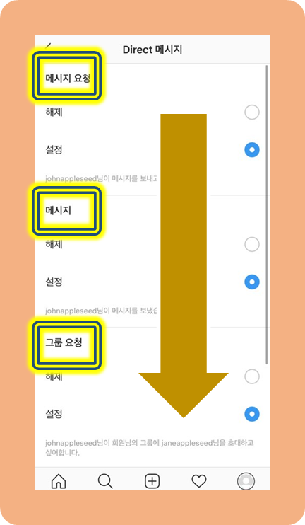 누군가가 메세지를 보내려고 할 때, 내가 굳이 허용을 안해줘도 바로 메세지를 확인할 수 있도록 변경 가능해요.