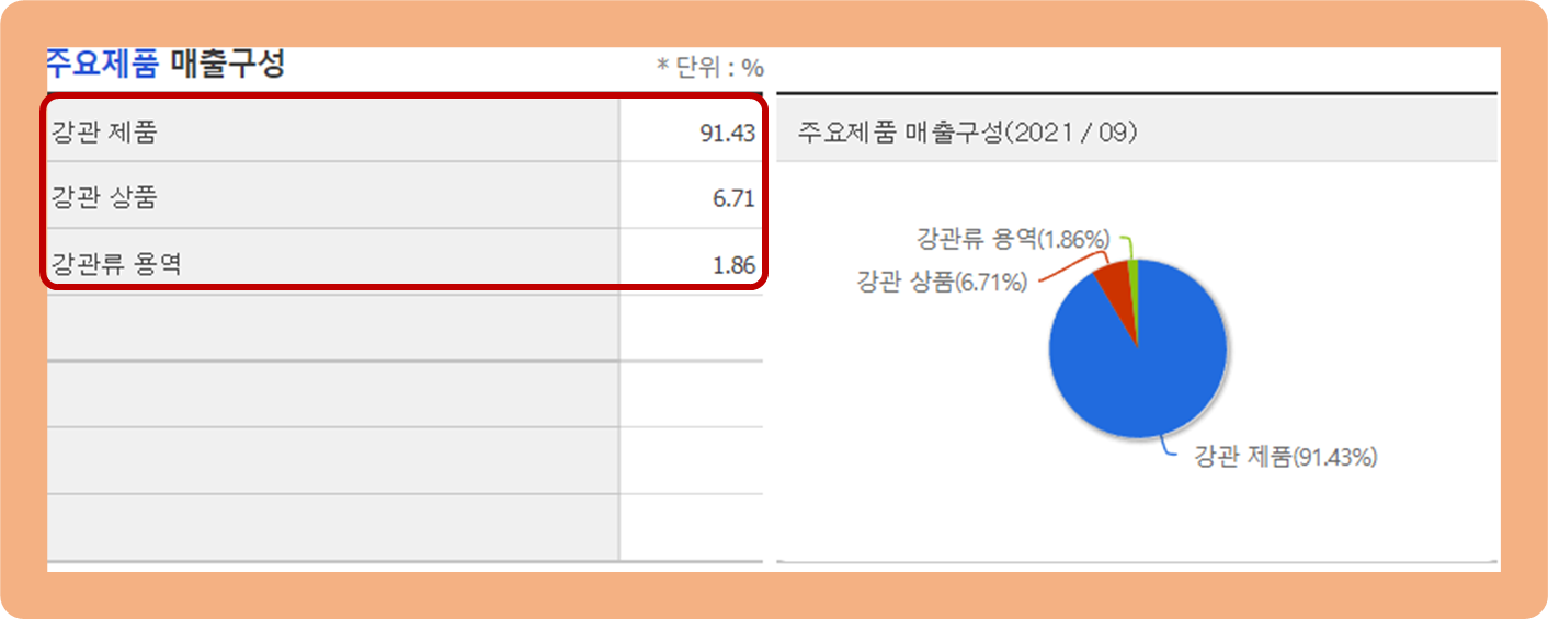 강관 제품 및 상품 부문이 총 98.1%를 차지하고 있으며, 나머지 강관류 용역 부문이 약 1.9%를 차지하고 있네요.