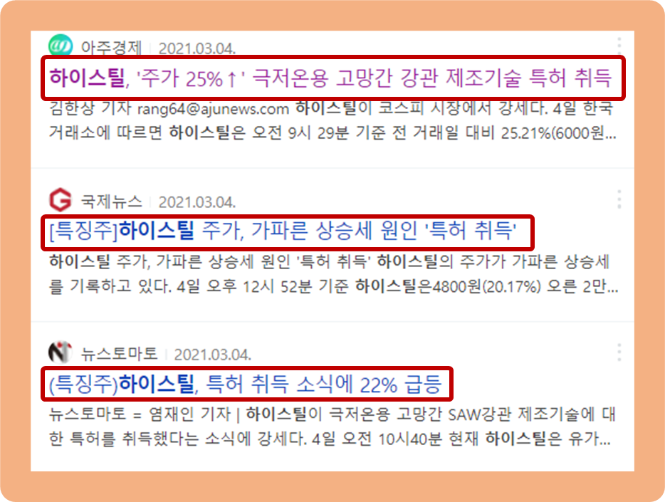 우선, 지난 2021년 1월 3일 하이스틸이 전세계 최초로 조선해양플랜트 극저온용 고망간 SAW강관 제조기술 특허를 취득했습니다.