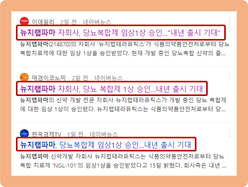 지난 2월 15일, 뉴지랩테라퓨틱스가 식약처로부터 당뇨 복합치료제인 NGL-101의 임상 1상을 승인받았다는 소식을 발표했습니다.