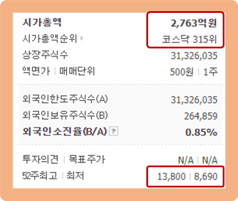현재 기준 시가총액은 약 2,763억원으로 코스닥 315위인 기업이구요.