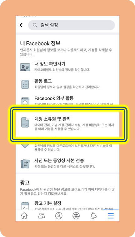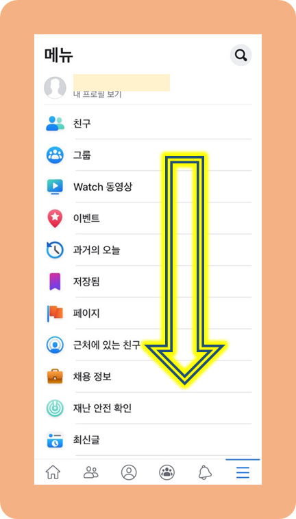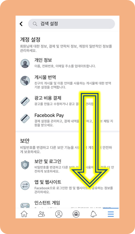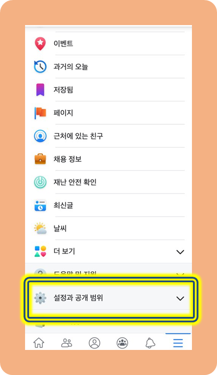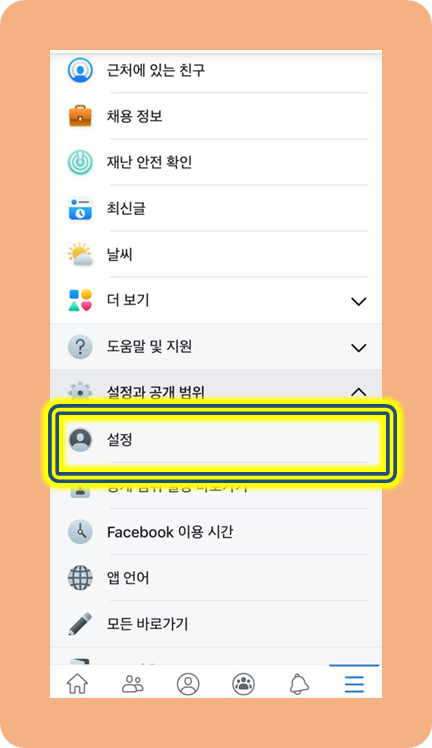 설정과 공개 범위를 누르시면 → 밑에 새로운 메뉴가 나타나는데요.
