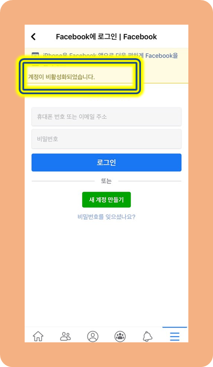 두번째. 페이스북 비활성화 푸는법(해제 풀기 방법)