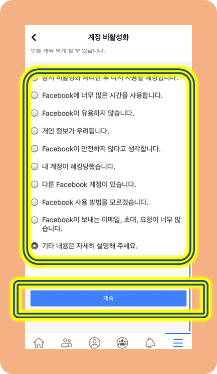 이건 귀찮으니까 아무 이유나 선택해주신 후 계속을 눌러주세요 ㅎ