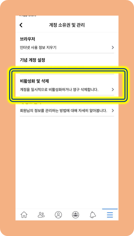 원하시는 대로 체크 한 후 아래에 계정 비활성화 버튼을 눌러주세요.