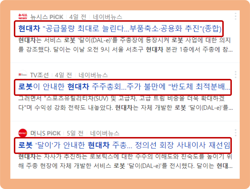 아울러 현대차는 자사가 추진중인 로보틱스에 관한 주주분들의 이해도를 높이기 위해 주주총회 현장에 자체 개발한 서비스 로봇인 달이(DAL-e)를 전시했다고 하네요.