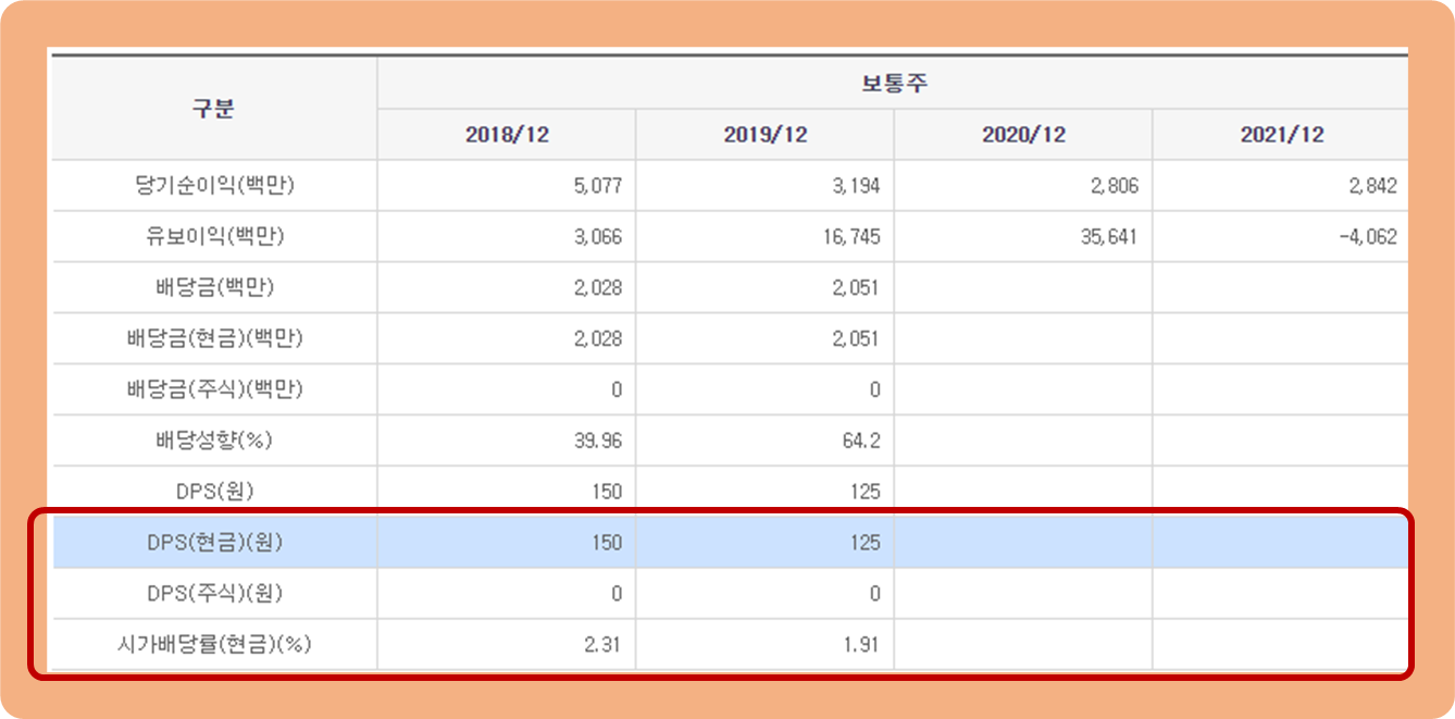 2018년 : 150원, 2019년 : 125원의 주식 배당금을 지급했었는데요.