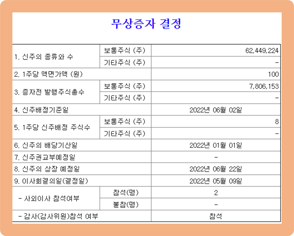 이번 무상증자로 인해 발행되는 신주는 총 6244만9224주이며, 신주 상장 예정일은 6월 22일입니다.