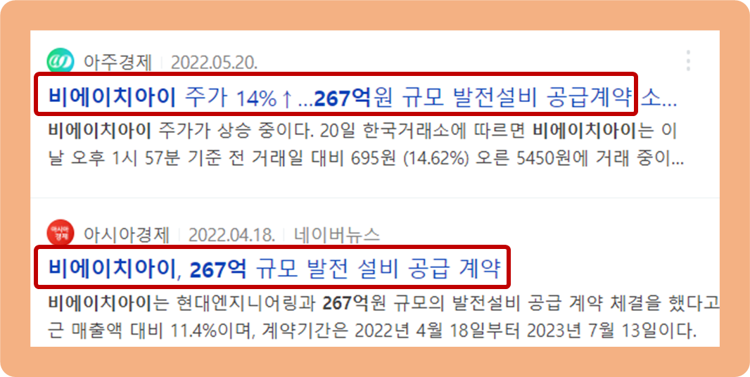 우선, 최근 비에이치아이가 2022년 초까지 연이어 체결한 공급계약들에 관해 살펴보고 넘어가도록 하겠습니다.