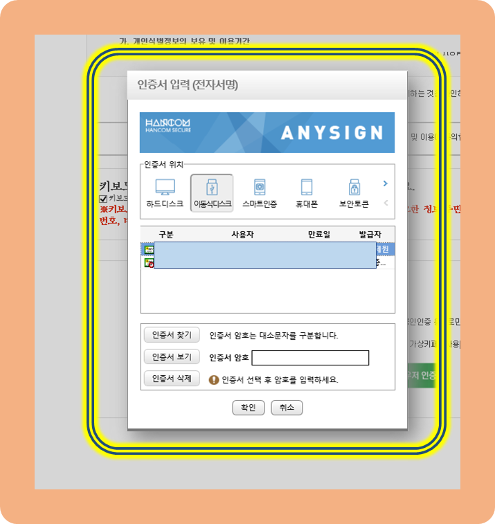기존에 보유하고 있던 공인인증서로 로그인하면 된다.