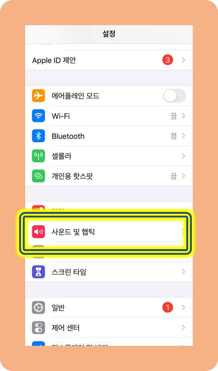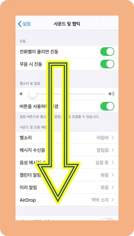 제가 표시한 사운드 및 햅틱으로 들어가주세요.