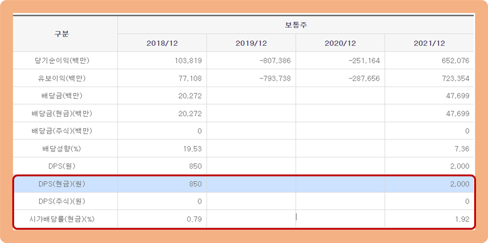 그리고 이번 2021년도에는 이익 흑자 전환에 힘입어 1주당 2,000원의 배당을 실시했으며, 배당수익률은 약 1.9% 수준입니다.