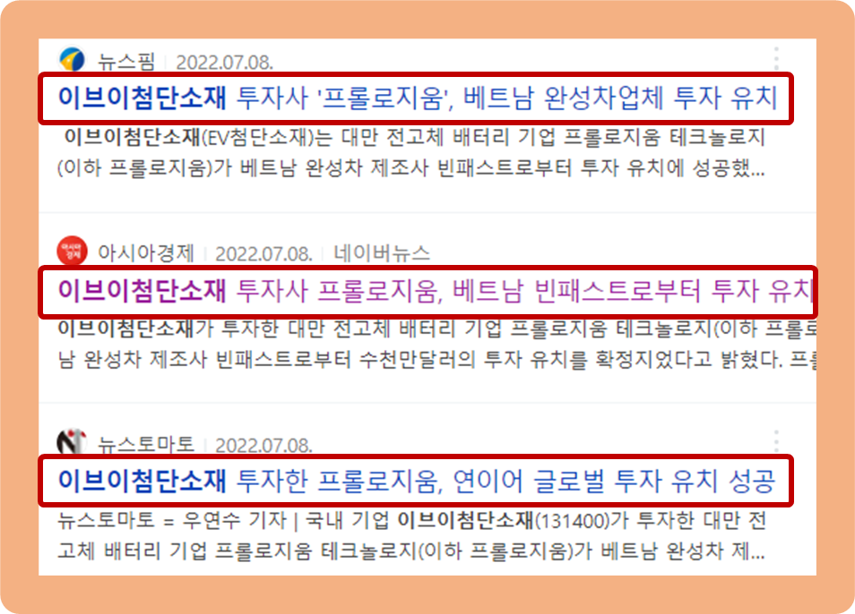 우선 지난 2021년 8월, 이브이첨단소재가 약 850만 달러를 투자해 대만의 전고체 배터리 기업인 프롤로지움의 지분 약 5.5%를 확보한 바 있는데요.