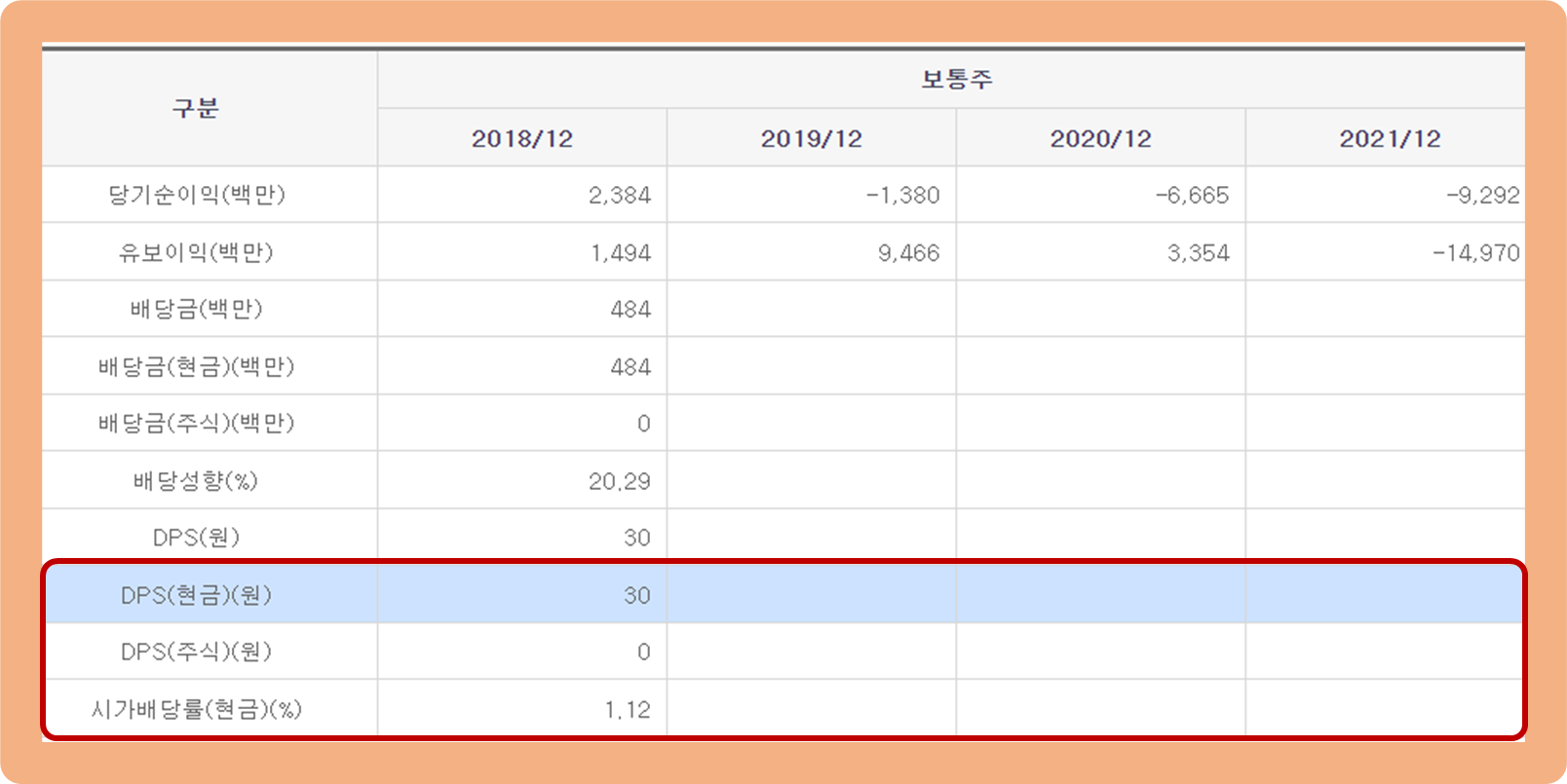 하지만 다음 해인 2019년도부턴 재정 상황 악화로 인해 배당을 실시하지 못하고 있는 모습이네요.