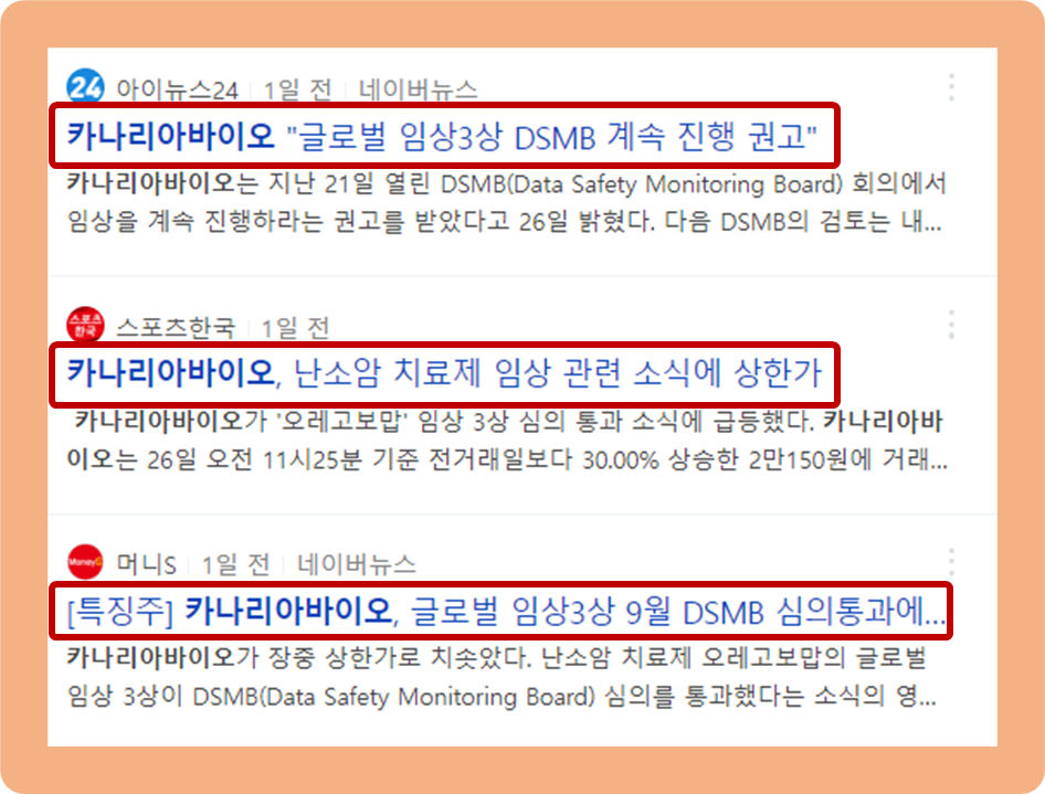 지난 9월 21일 개최된 DSMB 회의에서 카나리아바이오가 임상을 계속해서 진행해도 된다는 권고를 받게 된 것이죠.