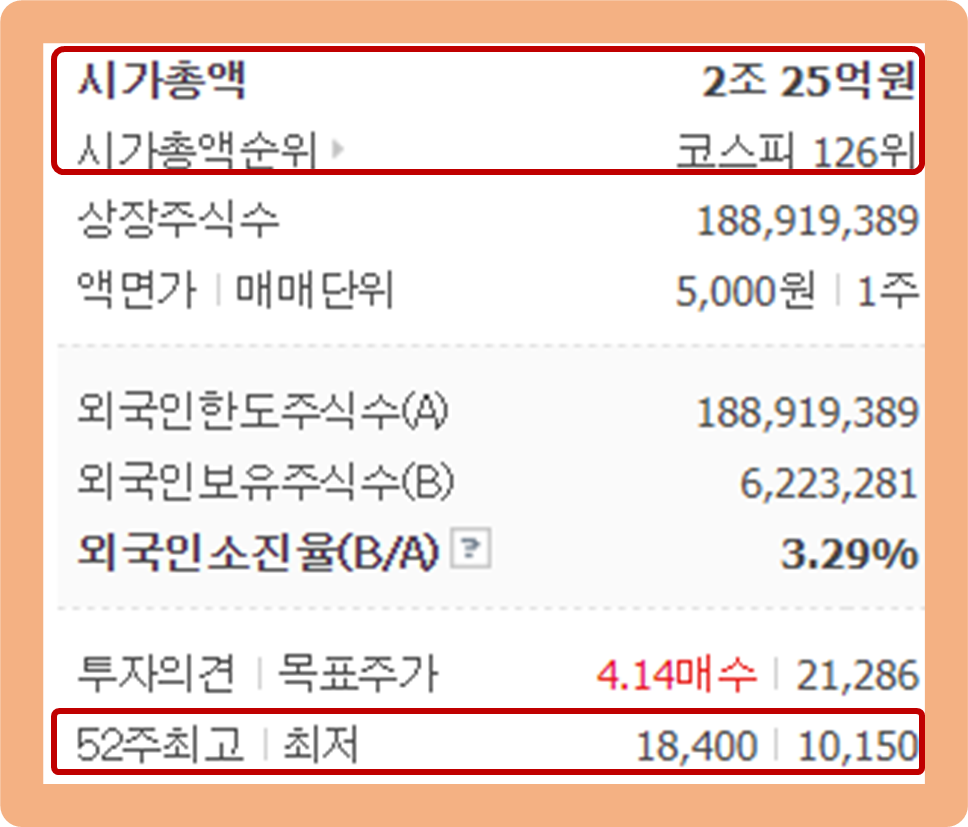 현재 기준 시가총액 약 2조 25억원으로 코스피 126위인 기업이구요.