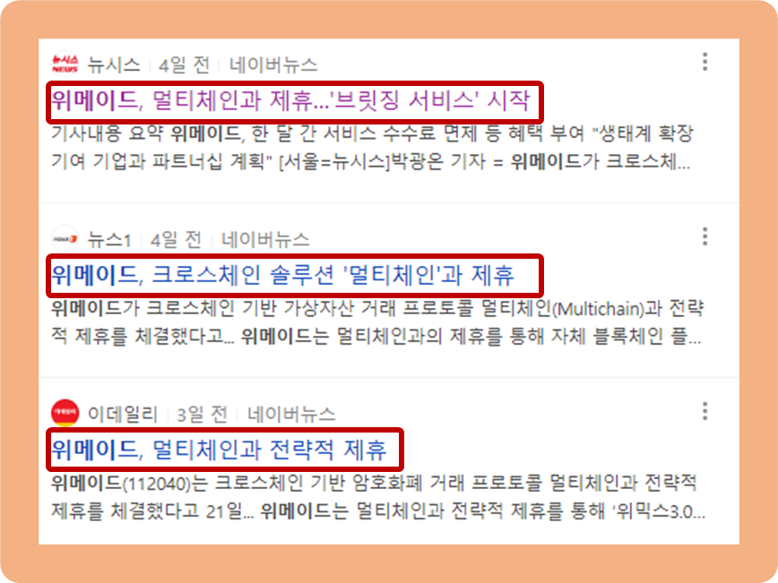 그리고 다음 날인 2022년 10월 21일에는 위메이드가 크로스체인 기반 가상자산 거래 프로토콜인 멀티체인과 전략적 제휴를 맺었습니다.