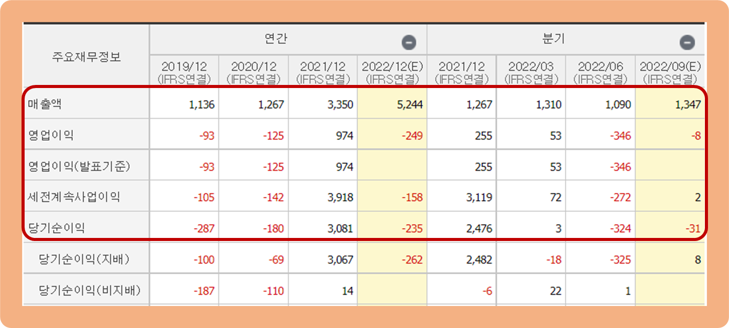 하지만 2022년 3분기 누적 기준 실적이 또 다시 적자를 기록하고 있는 바, 올해에도 2년 연속 흑자를 기록하는 건 다소 어려워보입니다.