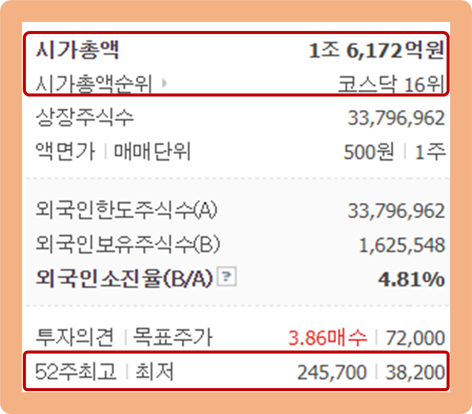 52주 최고가는 245,700원이며, 52주 최저가는 38,200원이네요.