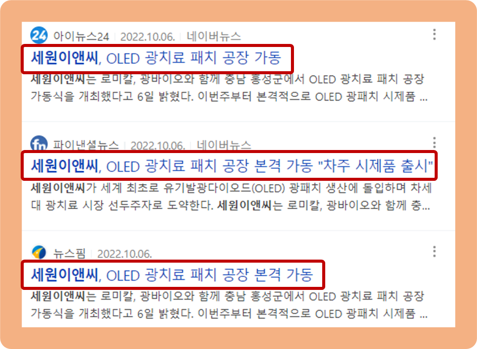 세원이앤씨 주가, OLED 광치료 패치 공장 가동 소식