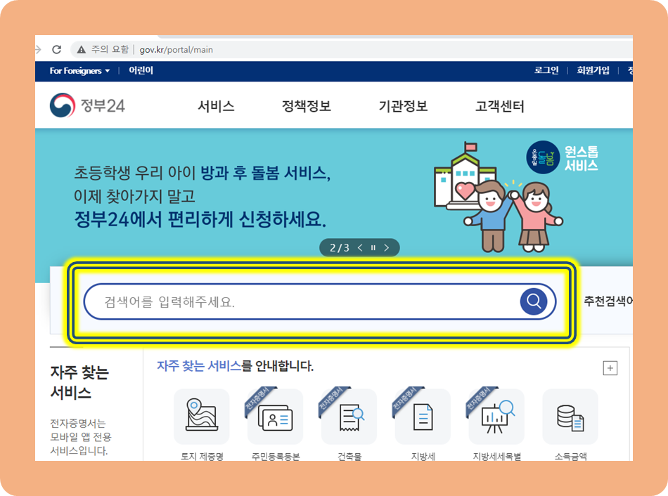 어떤 종류의 증명서를 받기 위해서, 대부분은 정부 24에 들어갑니다.