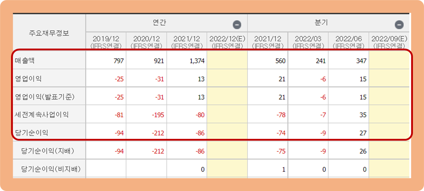 그리고 2022년 3분기 누적 기준 당기순이익이 -56억원 손실을 기록하고 있는 바, 올해에도 당기순이익의 흑자 전환은 다소 어려워보이는 상황입니다.