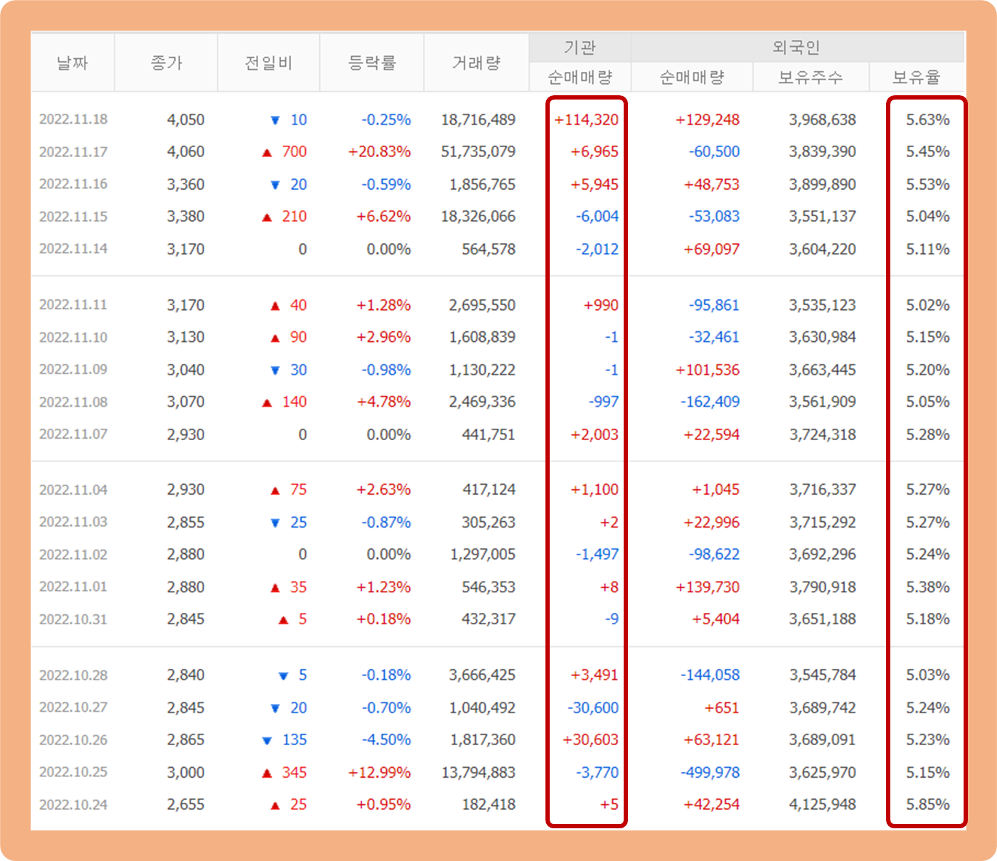 우선 기관투자자의 경우 최근 매수세가 급증하고 있는 모습이구요.