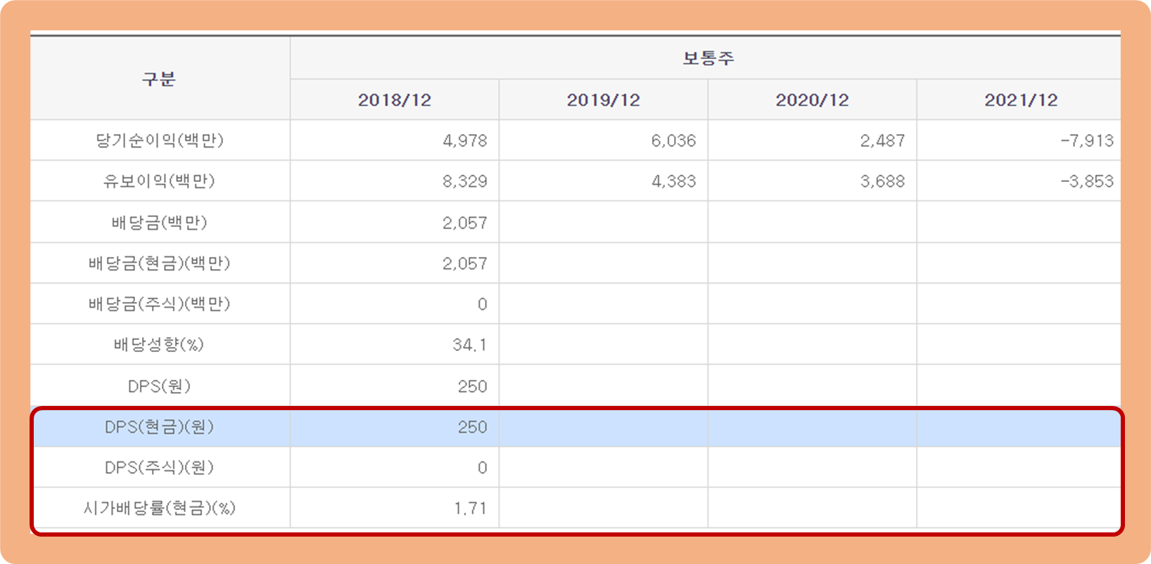 지난 2018년 기준 1주당 250원의 배당을 실시하였으며, 배당수익률은 약 1.7% 수준이었는데요.