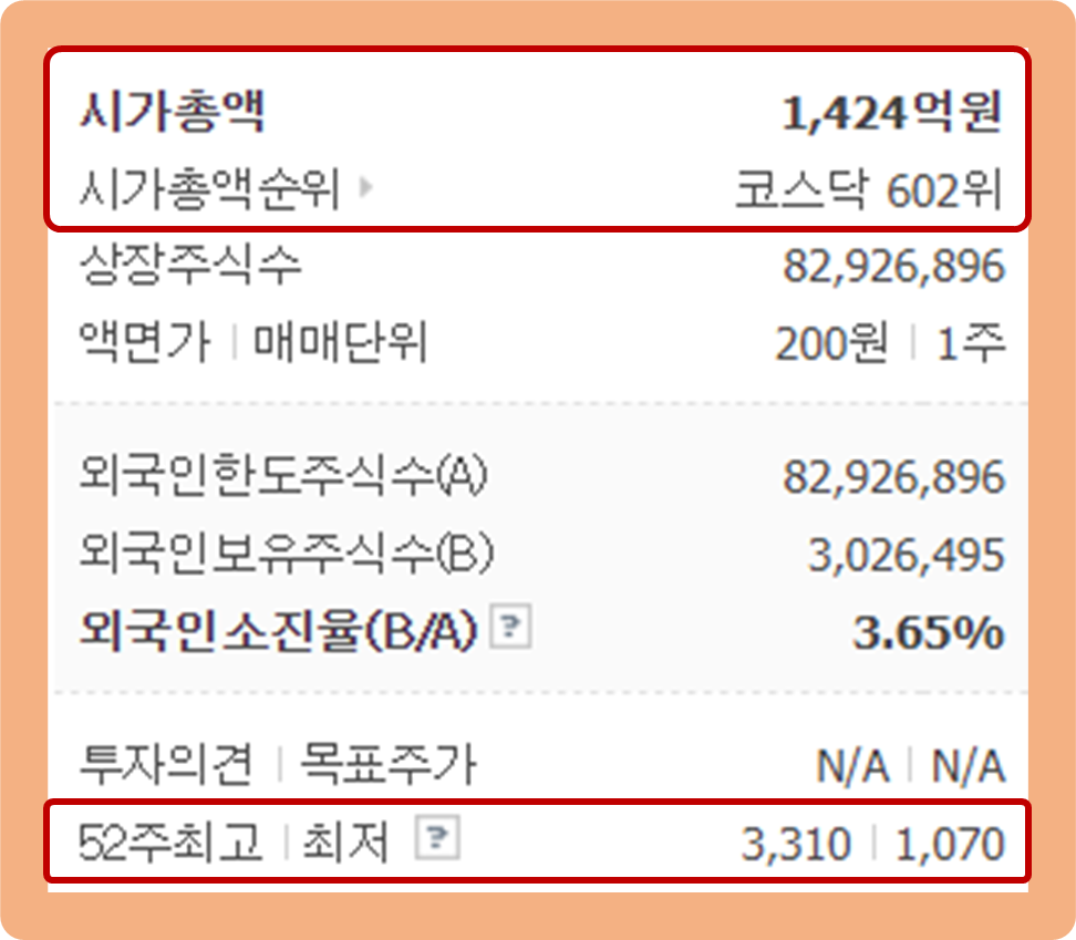 현재 기준 시총 약 1,424억원으로 코스닥 602위인 기업이구요.